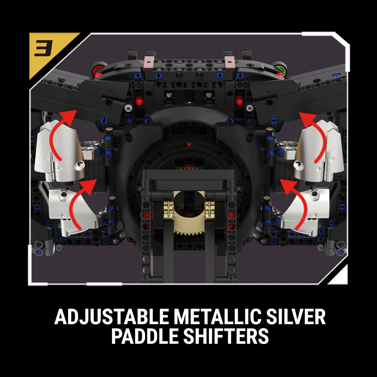 A quick-release mechanism, adjustable metallic silver paddle shifters with upward pull function, and adjustable phone holders complete the build, blending modern technology with mechanical realism. Whether displayed as a centerpiece or explored up close, this model captures the essence of precision German engineering.