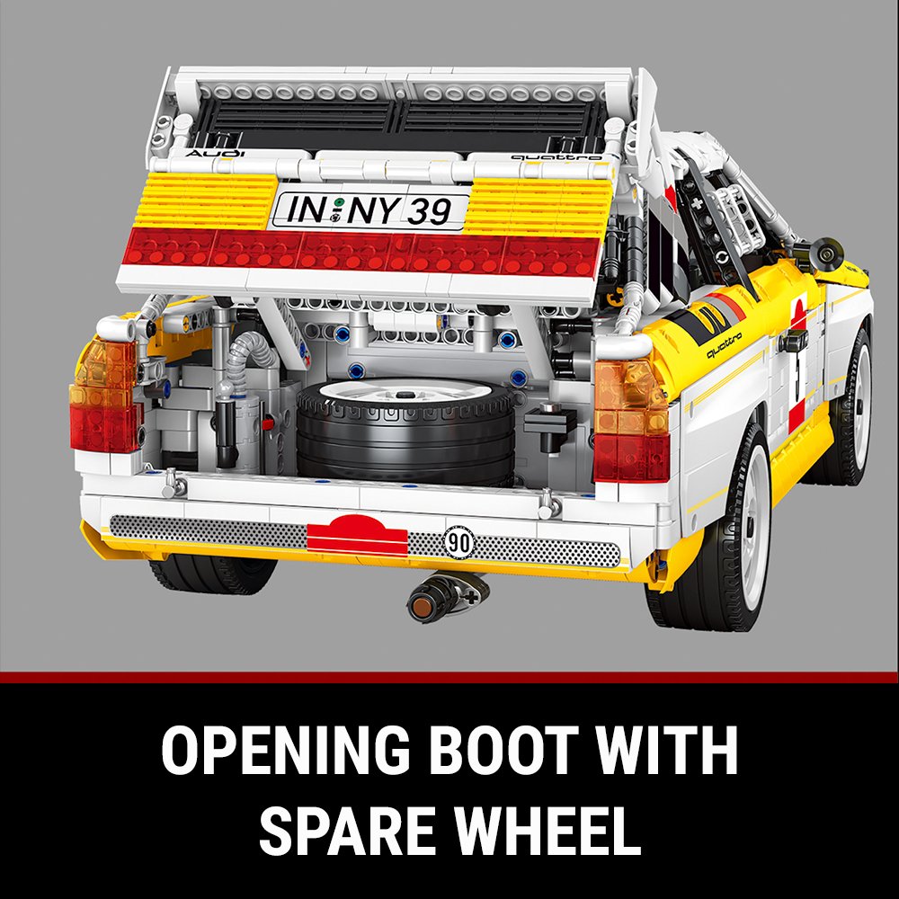 Constructed from 3886 high-precision pieces and stretching over half a meter in length, this model delivers both presence and performance. Equipped with remote-controlled drive and steering and a full 4-wheel drive system, it brings the raw power and aggressive handling of Group B rallying to life. Front and rear LED kits further enhance its road presence, making the model just as striking in motion as it is on display.