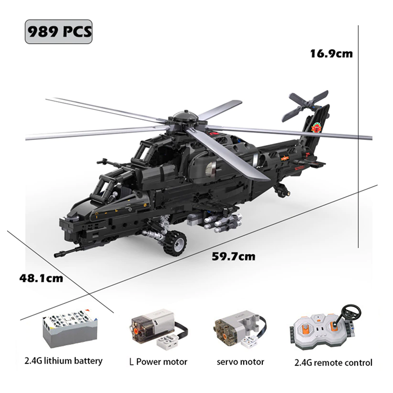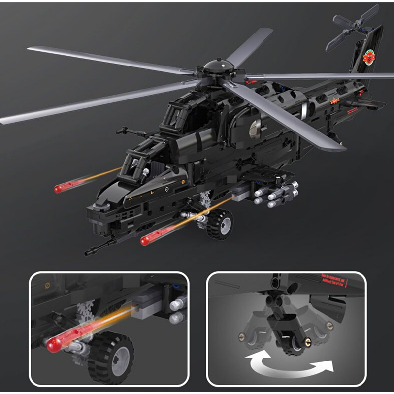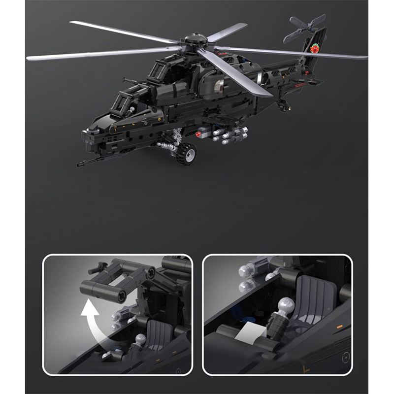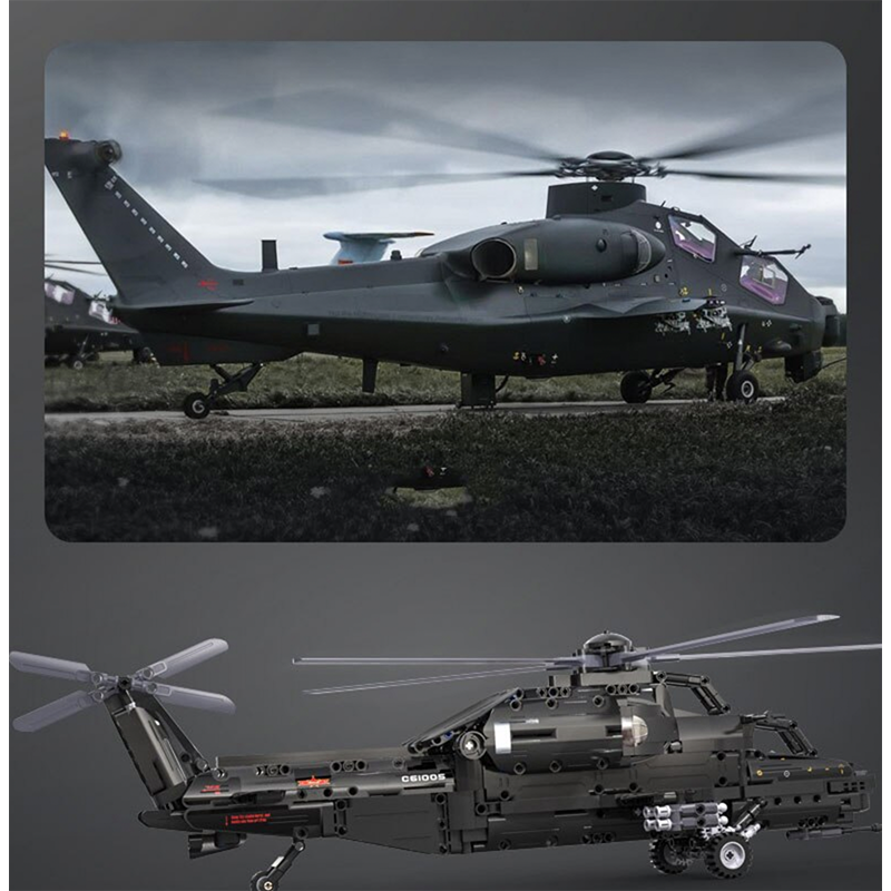 The Remote Controlled CAIC Z-10 Helicopter is the first and only block-built helicopter model to deliver true remote-controlled functionality combined with aggressive military realism.