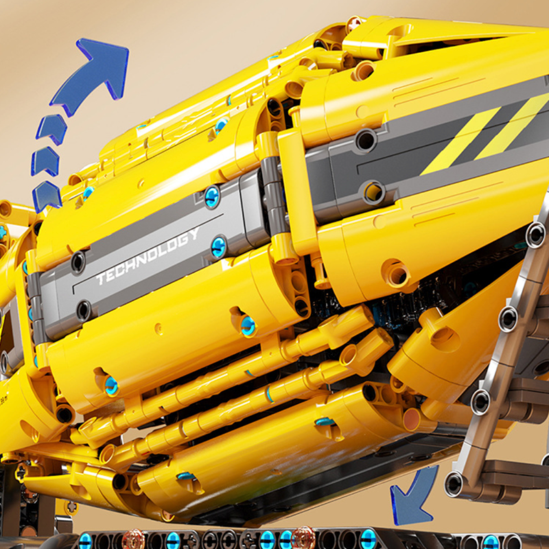 Opening doors reveal a detailed operator cabin, while the tilting cab mechanism provides access to internal mechanical components, reinforcing the engineering-focused design. Powered by a rechargeable battery pack and controlled via the included remote or compatible phone app, this model transitions seamlessly between display and dynamic operation.
