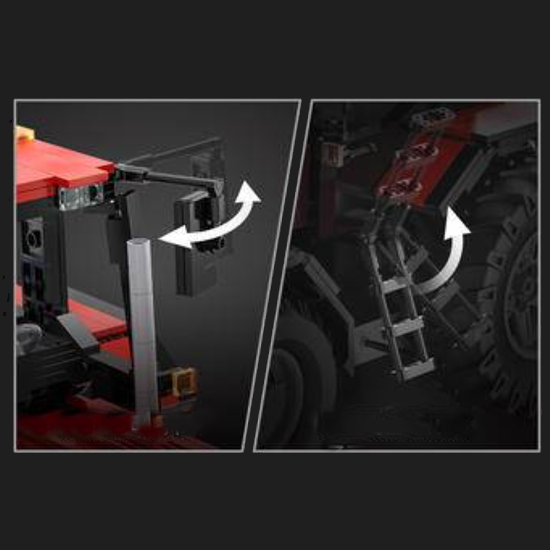Details extend beyond mechanics into the cabin itself, with a detailed interior, opening hood, folding mirrors, and a retractable access ladder that enhance realism and visual depth. Every component is designed to replicate the feel of modern farming equipment.