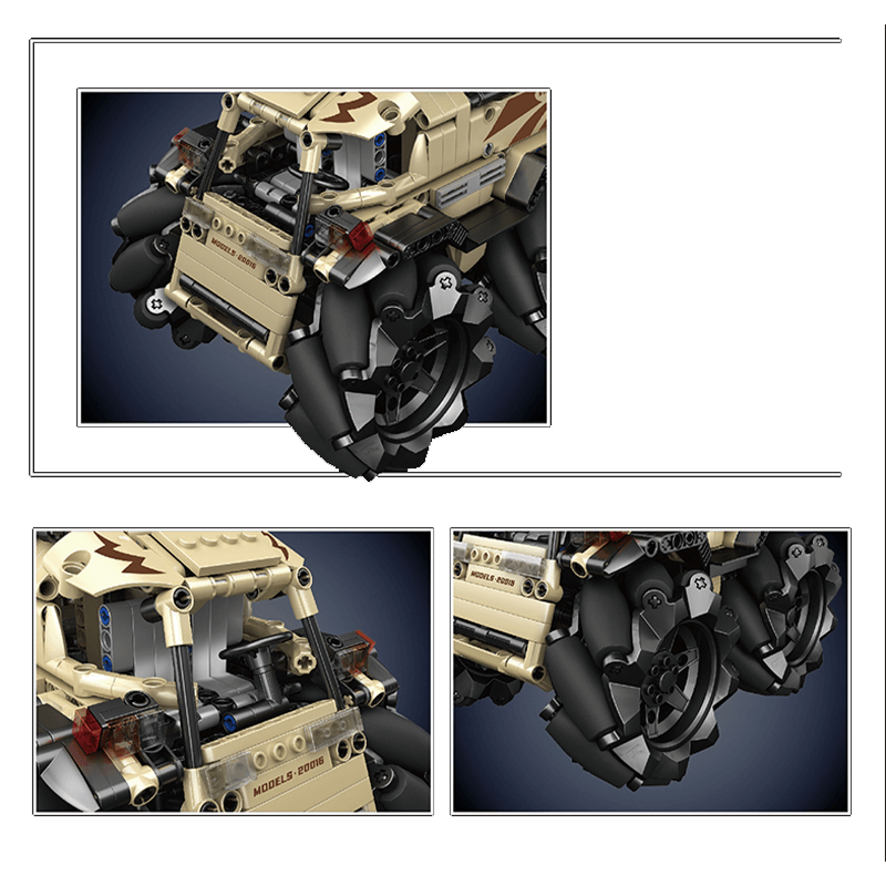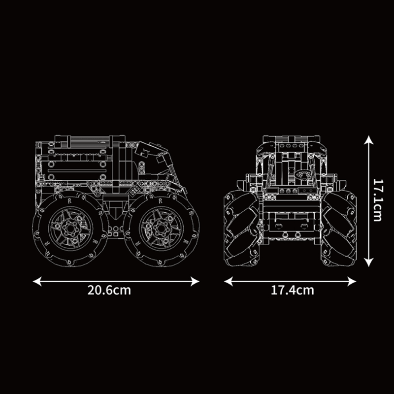 Built from over 600 precision pieces and scaled to 1:16, this ATV measures just over 20cm in length, yet delivers exceptional capability far beyond its size. Its defining feature is the omnidirectional wheel system, allowing seamless movement in all directions and unmatched manoeuvrability across difficult terrain.